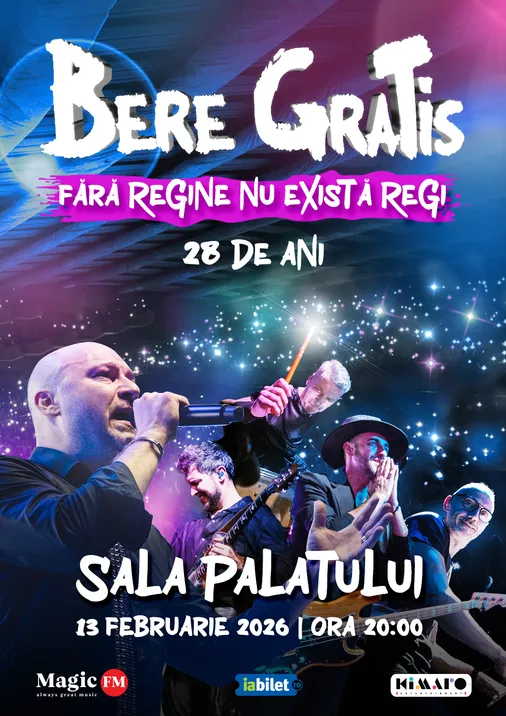 Pe 13 februarie, Bere Gratis, una dintre cele mai iubite trupe ale României, revine Sala Palatului pentru a celebra 28 de ani de carieră cu emoție, dragoste și prietenie.
