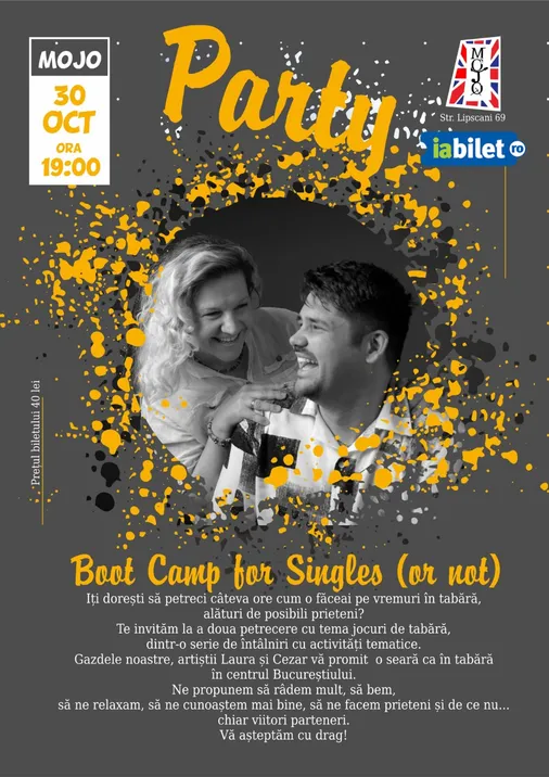 Te așteptăm pe 30 octombrie, de la ora 19:00, în Mojo, la a doua ediție de Jocuri de Tabără – un eveniment unde ne amuzăm, ne aducem aminte de micile stângăcii și ne bucurăm ca atunci când eram copii.