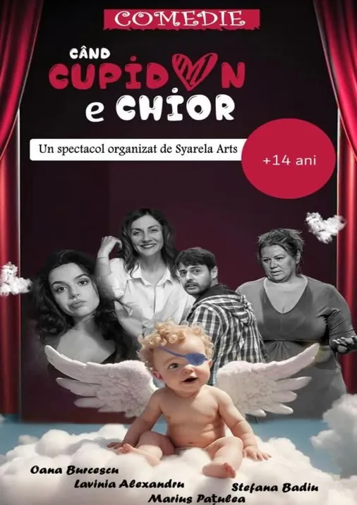 “Cand Cupidon e chior” este o comedie de exceptie adaptare dupa un manunchi de texte foarte bine scrise. Astfel, nu poate rezulta decat un spectacol savuros, presarat cu multe momente comice, in care nu ai cum sa nu te regasesti macar un pic: 3 cupluri si 6 posibilitati de relationare in dragoste, 3 perechi si 6 incurcaturi. Dupa o saptamana grea, meriti o seara plina de relaxare, o seara in care sa razi cu pofta si sa te destresezi, sa te amuzi si sa te energizezi alaturi de o trupa pestrita de teatru.