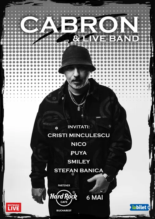 Va invitam la Hard Rock Cafe, miercuri, 6 mai, incepand cu ora 21:00, la un concert cu Cabron & Live Band. Invitati speciali vor fi: Cristi Minculescu, Nico, Puya, Smiley si Stefan Banica!