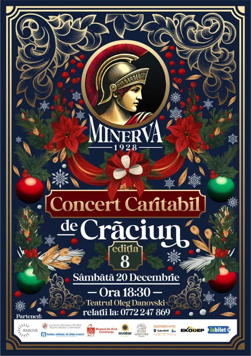 Asociația MINERVA TOMITANA invită comunitatea constănțeană la Concertul Caritabil de Crăciun - Ediția a VIII-a, ce va avea loc sâmbătă, 20 decembrie 2025, de la ora 18:30, pe scena prestigiosului Teatrul Național de Operă și Balet "Oleg Danovski" din Constanța.