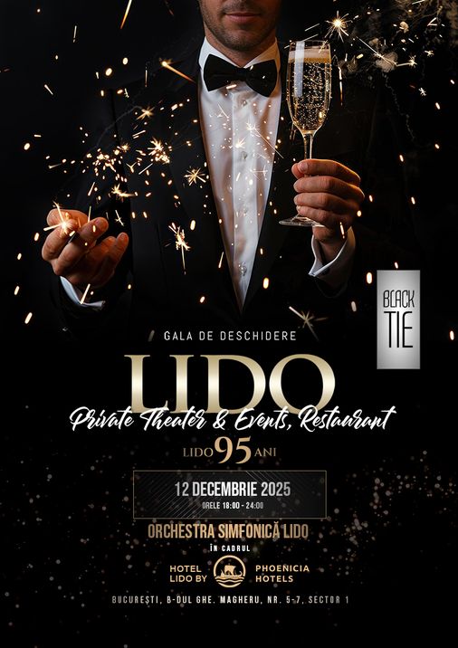 Vă invităm la Gala de Deschidere Lido Theater & Events Restaurant pentru a celebra împreună 95 de ani de existență a Hotelului Lido, din același Bulevard General Gheorghe Magheru, nr. 5–7.