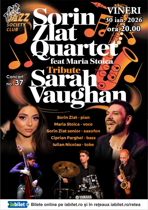 In acest concert - tribut, Sorin Zlat Quartet si Maria Stoica aduc in fata publicului spiritul, eleganta si profunzimea repertoriului lui Sarah Vaughan. Nu este o simpla reconstituire, ci o reinterpretare vie, plina de creativitate, in care marile teme ale jazzului vocal sunt readuse la viata.