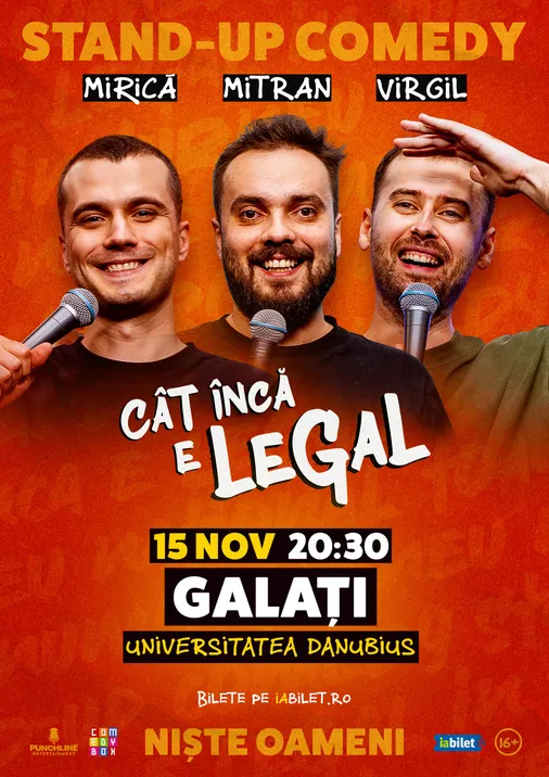 Galați: Stand-up Comedy cu Sergiu Mirică, Virgil Ciulin și Dragoș Mitran | Niște Oameni | Cât încă e legal - ORA 20:30