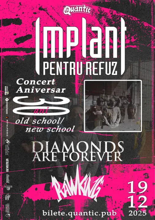 Implant Pentru Refuz vin cu energia aia care n-a obosit deloc în 30 de ani, iar Diamonds Are Forever revin în joc după o pauză de șase ani, cu chef mare de zgomot și un sunet nou-nouț.