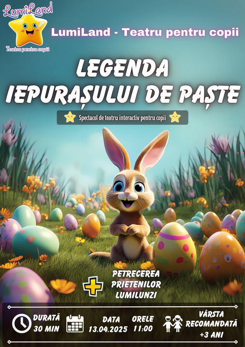 Descoperă magia sărbătorilor la spectacolul interactiv "Legenda Iepurașului de Paște" la LumiLand - Teatru pentru copii! Show more details