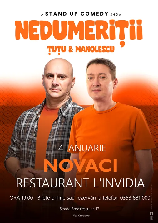 Novaci, adună-ţi gaşca şi vino duminică, 4 ianuarie, la restaurantul L’invidia, să îi vezi pe Cristi – ce mi-ai pus pe tăviţă, mamă – Manolescu şi Dan Ţuţu, un povestitor desăvârşit care te va cuceri cu naturaleţea sa.