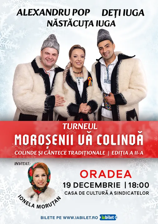 Dacă de Crăciun, toate drumurile duc în Maramureș, în perioada premergătoare acestuia, Maramureșul ia drumul colindatului și vine în orașele dumneavoastră prin prezența îndrăgiților artiști maramureșeni: Deți Iuga, Năstăcuța Iuga si Alexandru Pop!
