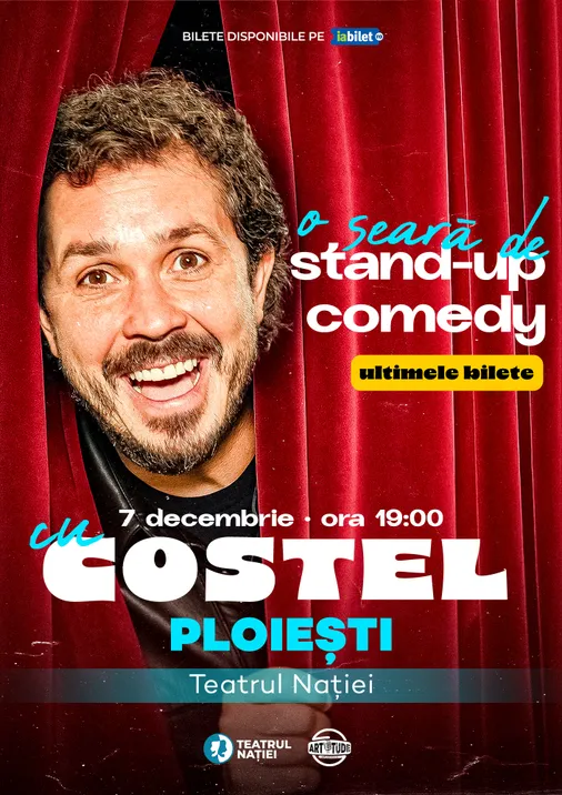 Vino pe 7 decembrie, de la ora 19:00, la Teatrul Nației din Ploieşti, pentru o seară plină de râs alături de Costel! O experienţă relaxată, cu umor pe bune şi voie bună — exact ce trebuie pentru o ieşire memorabilă!
