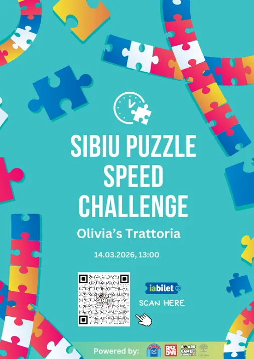 Board Games Community Sibiu și D-toys/Roovi te invită Sambata, 14 Martie 2026, ora 13:00, la un nou eveniment/campionat de Puzzle, care va avea loc la Olivia's Trattoria, din cadrul Zacaria Retail Center, Șoseaua Alba Iulia 77A, din Sibiu.