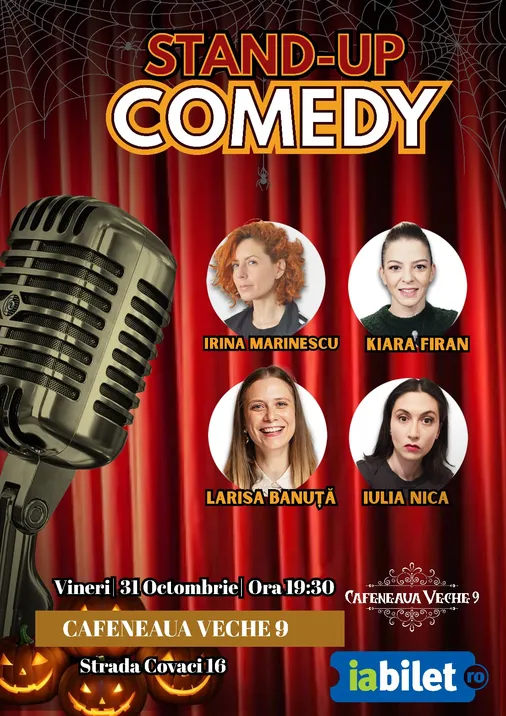 Irina Marinescu, Kiara Firan, Larisa Bănuță și Iulia Nica vin la Cafeneaua Veche 9, Str. Covaci 16, cu umor întunecat, glume de pe altă lume și multă ironie.