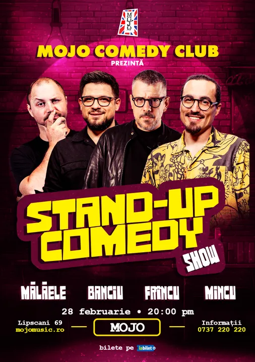 Pe 28 februarie, de la 20:00, la MOJO – Lipscani 69, Centrul Vechi, dăm drumul la o seară de stand-up din aia de povestit a doua zi la birou (dar fără să poți repeta glumele exact… că-s prea bune)