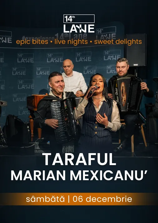 Seară de neuitat la 14th LANE cu Marian Mexicanu’ și taraful lui. De la cântece de pahar până la romanțe care aprind inimile, seara curge în valuri de energie și bună dispoziție. Îți pregătim preparate boierești și băuturi pe măsură, ca să ducem emoția la următorul nivel.
