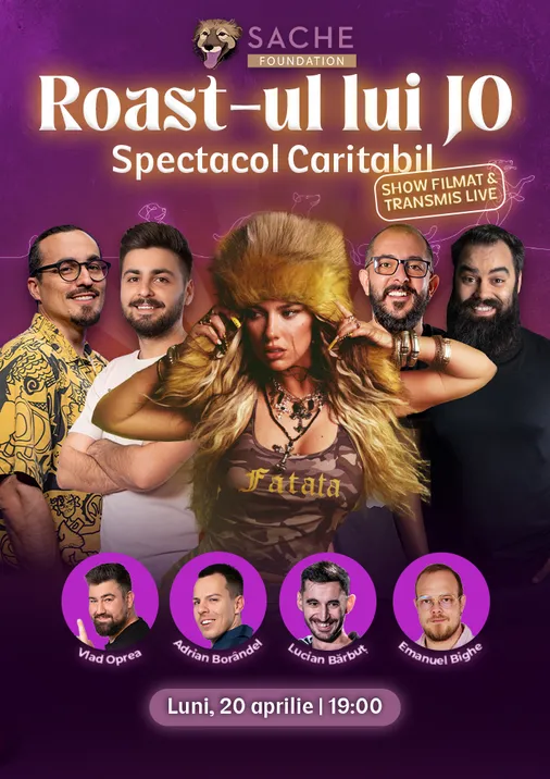 Pe 20 aprilie la The Fool, Jo Ioana urcă pe scenă....nu ca să cânte, ci ca să fie luată la ‘roast’ de unii dintre cei mai buni și inimoși comedianți din România – într-un show caritabil dedicat protecției animalelor, unde glumele sunt bune, iar scopul și mai bun.