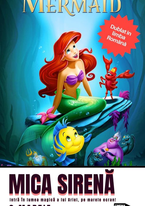 Duminică, 2 martie, ora 11:00, Ariel te așteaptă la proiecția specială a clasicului The Little Mermaid. Cântece de neuitat, prieteni subacvatici și o poveste fermecătoare – toate pe marele ecran, unde visele devin realitate! Proiecția este dublată în limba română, special pentru cei mici!