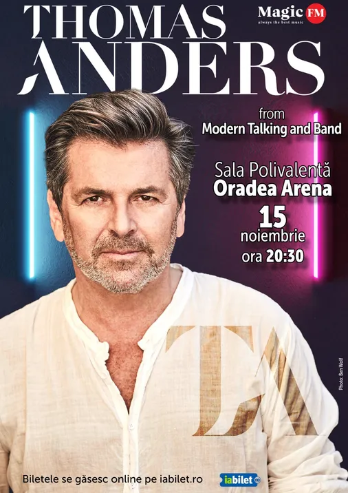 Pe 15 noiembrie 2025, de la ora 20:30, legendarul Thomas Anders, vocea emblematică a trupei Modern Talking, revine în România pentru un show de excepție la Sala Polivalentă – Oradea Arena. Artistul va fi însoțit de bandul său și va interpreta cele mai iubite hituri care au marcat generații, precum „You’re My Heart, You’re My Soul”, „Cheri, Cheri Lady” sau „Brother Louie”.