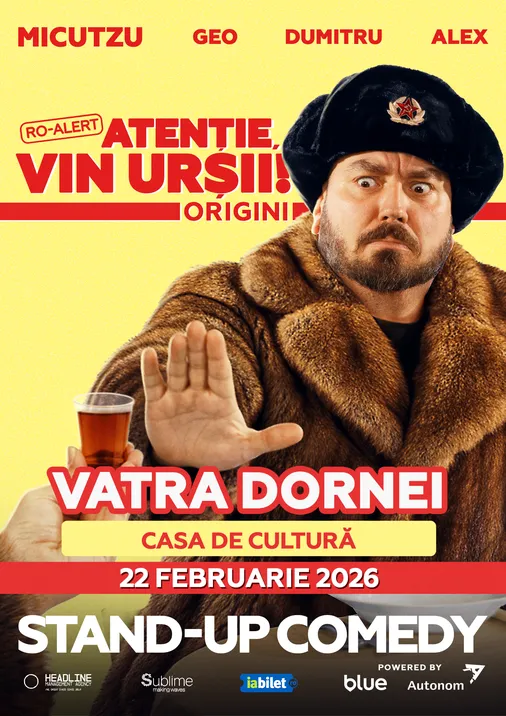 Vatra Dornei: Stand-up Comedy cu Micutzu, Geo Adrian, George Dumitru si Alex Ionita - RO ALERT - “Atentie, vin ursii!" - ORA 21:00