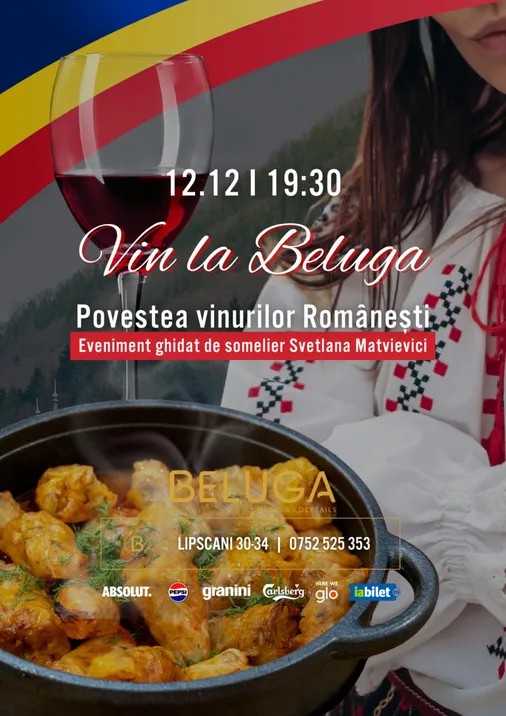 Te invităm la o seară dedicată gusturilor autentice românești, într-o experiență completă de gastronomie și vin, unde tradiția și rafinamentul se întâlnesc într-o atmosferă caldă și relaxată, la Vin la Beluga.