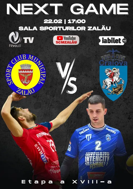 Duminică, 22 februarie, ora 17:00, jucăm acasă cu SCMU Craiova, iar atmosfera din Sala Sporturilor Zalău depinde de voi. Vă încurajăm să veniți în număr cât mai mare — sprijinul publicului se simte in fiecare meci la fiecare punct. Show more details
